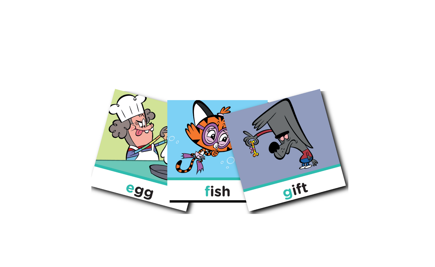 Match It Up: Take five lowercase cards and five uppercase cards. Match them by sound and illustration.