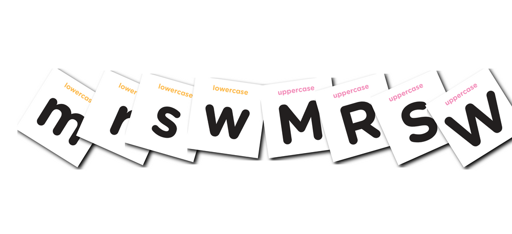 4 sturdy decks of uppercase and lowercase cards (A–Z).